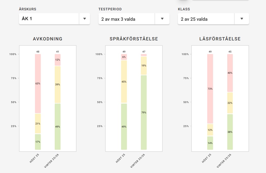 En termin har gått för våra ettor och det är dags att utvärdera höstens insats genom att screena våra elever utifrån LegiLexi ännu en gång. I år har vi 50 elever i åk 1 vilket är något färre än tidigare år. Av dessa 50 är 20 % andraspråkselever.